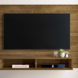 O Painel Flash é uma opção prática para ambientes compactos. Ele suporta TVs de até 42 polegadas e acompanha suporte universal, facilitando a montagem. A parte inferior conta com um nicho para acomodar aparelhos eletrônicos e organizar os cabos.