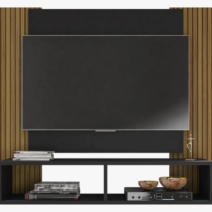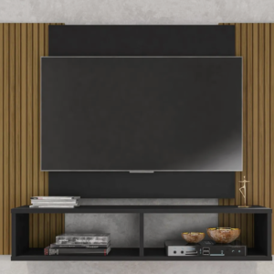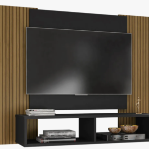 O Painel Navi é uma opção compacta para organizar a sala de estar. Ele suporta TVs de até 42 polegadas e conta com dois nichos para acomodar aparelhos eletrônicos, objetos decorativos ou itens do dia a dia.