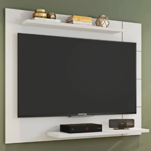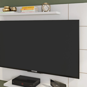 O Painel Cross da Caemmun é uma opção moderna para organizar a sala de estar. Ele comporta TVs de até 58 polegadas e possui design multiambiente, podendo ser usado também em outros espaços da casa. As prateleiras superiores e inferiores têm 25 mm de espessura e oferecem espaço para aparelhos e objetos decorativos.