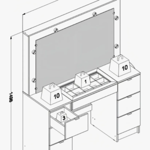 Penteadeira França, espelho, kit de ferragens e manual de montagem.
